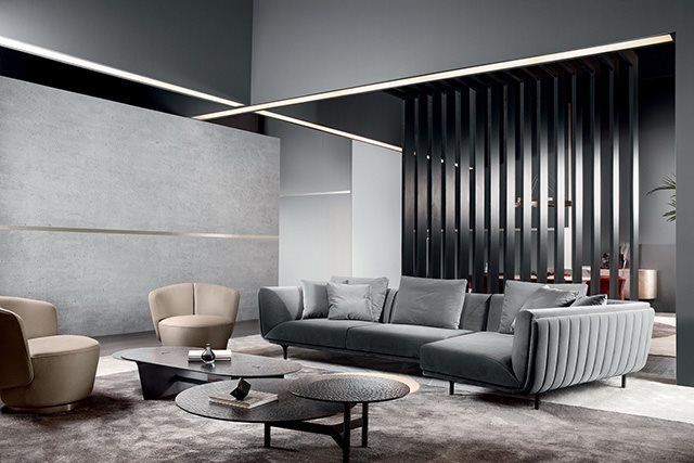 Nato dalla collaborazione con l'architetto Manzoni il Modello Premiere presenta una originale scocca esterna trattata con lavorazione verticale cannettè che contrasta piacevolmente con il design del divano.